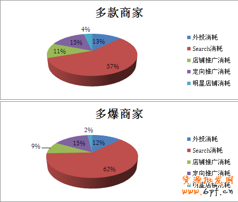 3.多爆商家的外投、店鋪推廣、明星店鋪的消耗低于多款商家;