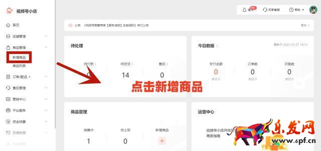 1、開通店鋪后點(diǎn)擊視頻號小店的后臺,點(diǎn)擊商品管理中的新增商品。
